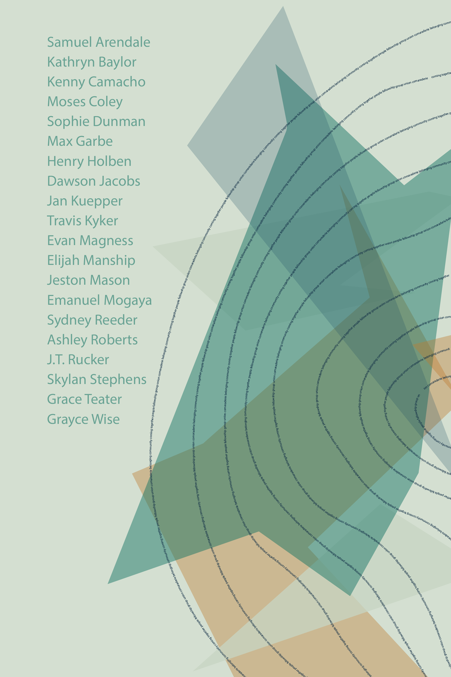 This project was a collaboration with The Phoenix, a campus wide literary and art publication through Milligan University. The theme “Coming Together” is represented by the combining of colorful shapes with different oppacity to layer to create new colors coupled with word synonmns similar to the theme on a typographic path mimicing a topographic map with the type paths getting closer together as they move towards the name.